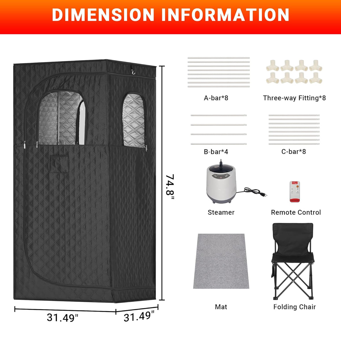 31.49"x31.49"x74.8" Portable Steam Sauna Box, Portable Sauna for Home, Person Sauna Tent Sauna Box at Home Spa with 1200W, Remote Control, Folding Chair, Home Sauna for Gym,Pilates,Hot Tub